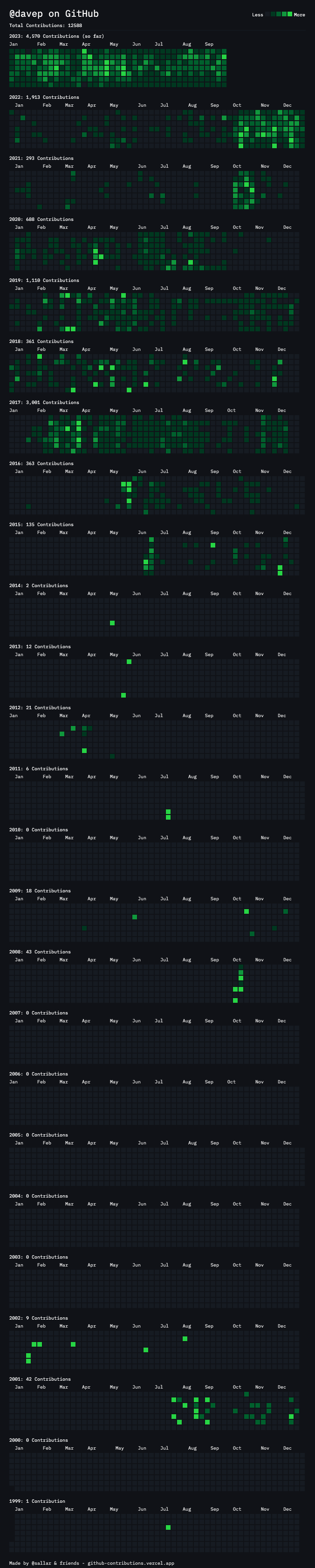 In about a week's time I'll have had a GitHub account for 15 years! I can't even remember what motivated me to create one now, but back in October 2008 I grabbed the davep account...